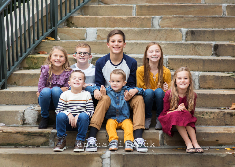 These are family friends of ours and I had the pleasure of taking pictures of their whole family this time! They were calling for rain all week but we ended up having a nice cloudy morning with lots of fall leaves all around. It worked out perfectly! Such a great, fun family!
