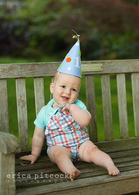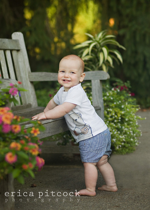 It is always fun for me to see my newborn clients awhile later to see how much they have grown and changed. This little guy is now one and I had not seen him since he was just a few weeks old. I had no problem getting smiles out of him – he thought that me hitting myself over my head with a stuffed bear was just hilarious! Over and over, every time!